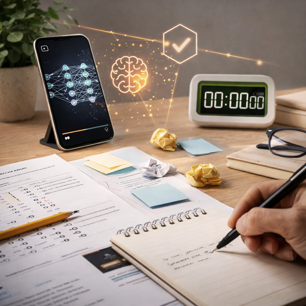 10秒動画で頻出をつかみ、1行要約で理解を言語化。予想問題を通じて、G検定の合格と実務で使える知識の両方を支援します。