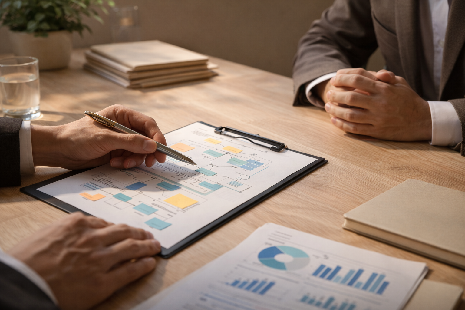 法人向けに、資格対策研修、教材開発、AI・システム開発までを一体で支援します。課題整理から設計、実装、運用まで伴走します。